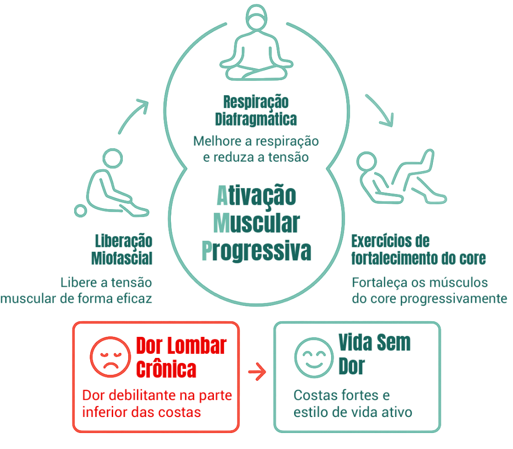 "Sistema de Ativação Muscular Progressiva" - um protocolo baseado em biomecânica avançada e fisiologia do movimento, inspirado no método Pilates, mas completamente adaptado para pessoas com dor lombar crônica.